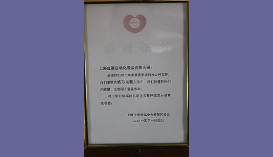 2015年,上海紅箭自動(dòng)化設(shè)備有限公司為上海市慈善基金會(huì)捐款